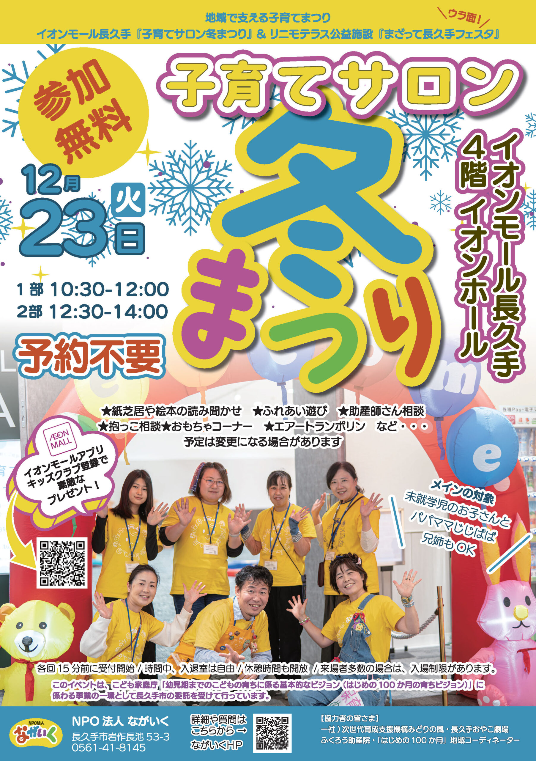 このイベントは、こども家庭庁「幼児期までのこどもの育ちに係る基本的なビジョン(はじめの100か月の育ちビジョン)」に係わる事業の一環として長久手市の委託を受けて運営しています。